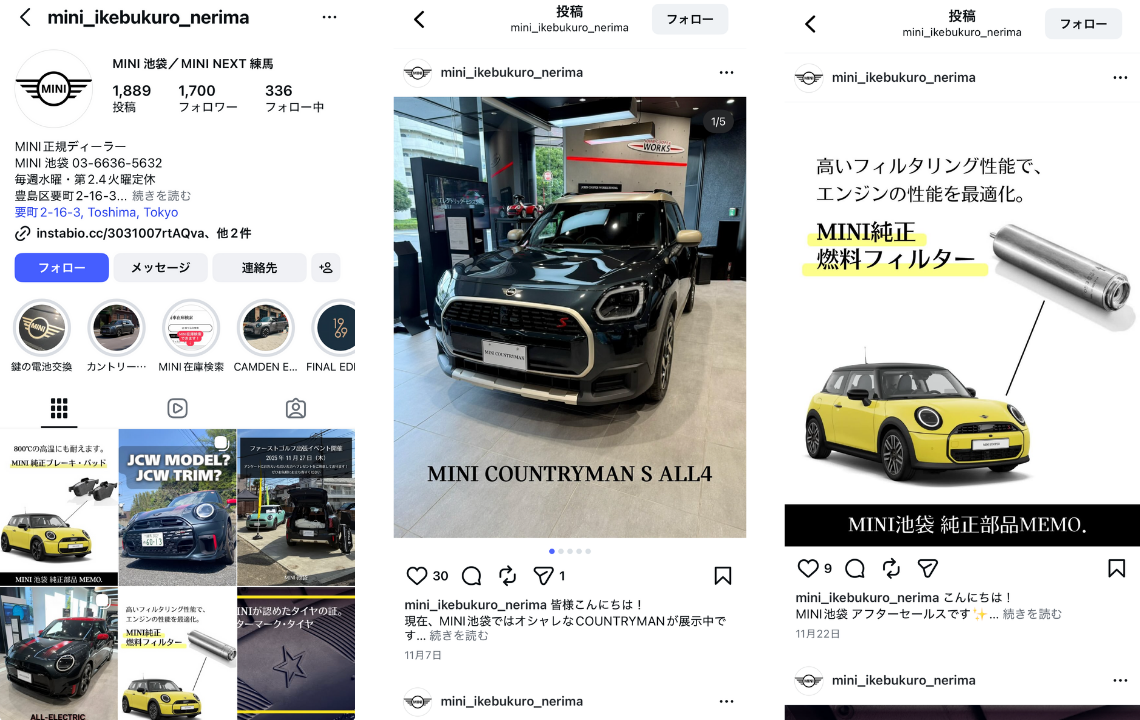 展示車両や最新情報はMINI池袋のInstagramアカウントからチェックできます